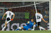 ‘전차군단’ 독일이 조직력에 정확성을 더한 효율적인 축구로 숙적 네덜란드를 꺾고 2012 유럽축구선수권대회(유로 2012)에서 가장 먼저 8강 진출을 확정했다. 독일은 14일 오전 우크라이나 메탈리스트 경기장에서 열린 B조 예선 2차전에서 두 골을 넣은 마리오 고메즈의 활약에 힘입어 네덜란드를 2-1로 제압했다. 독일은 이로써 승점 6점을 챙겨 남은 덴마크와의 조별리그 마지막 경기 결과와 상관없이 8강에 안착했다. 전반 23분과 37분 독일의 두 골은 모두 바이에른 뮌헨 소속인 바스티안 슈바인슈타이거와 고메즈의 콤비 플레이로 만들어졌다. 첫 골은 중앙에서, 두 번째 골은 우측에서 슈바인슈타이거의 킬패스가 네덜란드의 수비라인을 뚫은 뒤 고메즈가 문전으로 쇄도하면서 오른발 슈팅으로 골망을 흔들었다. 네덜란드는 후반 28분 로빈 판 페르시의 페널티박스 밖 중거리 슈팅이 골대 오른쪽으로 파고들어 추격을 실마리를 살렸다. 이후 체력이 떨어진 독일을 상대로 세차게 몰아붙였지만 몸을 던져 슈팅을 막아내는 독일의 조직력에 막혀 추가골을 만들어내는 데 실패했다. 네덜란드는 슈팅과 점유율에서 독일을 앞섰지만 짜임새는 떨어졌다. 느슨한 압박으로 공격라인과