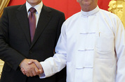 이명박 대통령은 14일 테인 세인 미얀마 대통령과 정상회담을 위해 미얀마의 수도 네피도를 국빈 방문했다. 지난 1983년 10월9일 북한이 저지른 ‘아웅산 테러’ 참사 이후 한국 대통령이 미얀마를 방문한 것은 29년만에 처음이다. 이 대통령은 이날 대통령궁에서 테인 세인 대통령과 단독·확대 정상회담과 국빈 만찬에 잇따라 참석했다. 두 정상은 회담에서 최근 양국관계가 새로운 발전의 계기를 맞고 있음을 긍정적으로 평가하고 경제·통상분야 협력 강화, 개발경험 공유, 에너지·자원개발 협력, 문화·인적교류 증진 등 양국 간 실질협력 확대 방안을 협의했다. 회담에서는 또 미얀마와 북한 간 군사협력 차단 등에 대해서도 협의한 것으로 알려졌다. 미얀마는 아웅산 참사 직후 북한과 외교관계를 단절했다가 지난 2007년 4월 관계를 복원한 바 있다. 이 대통령은 이어 미얀마 내 진출 기업과 동포 대표들과 오찬 간담회를 가질 예정이다. 특히 15일 미얀마 민주화를 이끈 아웅산 수치 여사를 만난다. 이 대통령은 이날 오전 양곤에 위치한 모 호텔에서 아웅산 수치 여사와 면담을 갖고 최근 미얀마 내 민주화와 인권