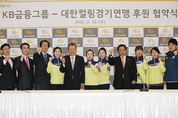 대한컬링경기연맹은 22일 서울 태평로 한국프레스센터에서 KB금융그룹과 공식 후원 계약을 맺었다. 이에 따라 컬링연맹은 올해부터 2015년까지 KB금융그룹에서 대표팀의 훈련과 대회 참가에 필요한 지원을 받는다. 한국 컬링은 2007년 동계아시안게임에서 금메달을 따고 지난해 동계유니버시아드에서 정상에 오르는 등 세계적인 수준에 근접했다. 그러나 대표팀은 국내에 훈련 시설이 적고 큰 관심을 받지 못해 어려움을 겪어 왔다. 김병래 대한컬링경기연맹 회장은 “2018년 평창 올림픽을 앞두고 대표팀이 더 좋은 환경에서 훈련할 수 있게 됐다”며 “평창 올림픽에서 좋은 성적을 거두겠다”고 밝혔다.