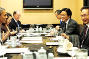 이명박 대통령과 버락 오바마 미국 대통령은 13일(현지시간) 미국의 확고한 한반도 방위공약을 재확인하고 올해 신설한 ‘확장억제정책위원회(EDPC)’를 더욱 활성화하기로 했다. 특히 양 정상은 세계 경제위기에 따른 불완전성 증대로 2008년 글로벌 금융위기 때와 같이 외환 유동성 공급을 통한 환율안정 필요성에 의견을 같이하고 양국 금융당국간 ‘통화 스와프(통화 맞교환)’ 협력방안을 구체적으로 모색키로 했다. 이와 함께 리비아사태와 관련, 리비아의 민주화 정착과 경제개건을 위해 양국간 공동 지원방안을 추진하고 구체적인 협력방안을 마련하기로 했다. 이 대통령과 오바마 대통령은 이날 오전 백악관 오벌오피스와 영빈관에서 각각 단독·확대 정상회담을 열어 이같이 합의했다. 양 정상은 회담에서 북한의 핵·미사일 개발에 따른 비대칭적 위협이 현격히 증대되고 있는 상황에서 한미 동맹이 더욱 실효적이고 즉각적으로 대응할 수 있도록 필요한 능력을 보강하고 대비태세를 대폭 강화키로 했다. 또 북한이 진행하고 있는 우라늄 농축을 포함한 핵 활동이 유엔 안전보장이사회 결의와 ‘9.19 공동성명’ 위반이라는 점을 확인하고 북한은 이를 즉각 중지해야 한다는 점에 인식을 같이했다. 양 정상