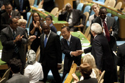미국의 중심 뉴욕에 있는 유엔본부는 21일(현지시각) 한국인 유엔 사무총장 반기문의 날이었다. 이날 오후 3시부터 열린 총회에 상정된 반 총장 추천 결의안이 192개 회원국의 박수 속에 통과되는 데 걸린 시간은 불과 3초 정도였지만, 1시간 조금 넘게 열린 총회의 나머지 시간은 그에 대한 찬사와 박수로 채워졌다. 각 지역 대표들과 총회 주최국 미국 대표 등의 발언은 지난 4년 6개월간 반 총장이 보여준 헌신과 업적에 대한 찬사로 가득 찼고 내년 1월부터 시작되는 반 총장의 두 번째 임기의 성공을 바라는 기원이 담겨 있었다. 신선호 유엔 주재 북한대사 등 북한 관계자들도 반 총장의 연설이 끝나자 박수를 보냈다. 두 번째 임기 성공 기원경쟁자가 없고 이미 반 총장의 연임이 사실상 확정된 탓인지 총회장을 메운 회원국 대표들은 반 총장의 연임을 축하하러 온 하객들처럼 보였다. 총회가 시작되고 넬슨 메소네 안전보장이사회 의장이 반 총장의 연임 추천 결의안을 제안한 후 조지프 데이스 유엔총회 의장이 반 총장 연임 안건을 공식상정하자 눈 깜작할 사이에 192개 회원국 대표들은 박수로 반 총장의 연임을 승인했다. 회원국 대표들은 반 총장의 연임안이 통과된 뒤 내년부터 다시