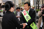 4.27 분당을 재보선에 출마한 민주당 손학규 대표의 지지율이 상승세를 타면서 당 안팎에서 기대감이 고조되고 있다. 출마 당시만 해도 승리 가능성에 회의적인 분위기가 적지 않았으나 일부 여론조사에서 박빙 열세이던 판세가 초박빙 또는 박빙 우세 양상으로 돌아서면서 “해볼 만한 싸움”이라며 힘을 얻는 모습이다. 한나라당의 철옹성인 분당 공략에 성공한다면 당 차원에서 내년 총선과 대선을 향한 교두보를 확보하는 것은 물론, 손 대표의 차기 대권 행보에도 한층 탄력이 붙을 수 있다는 인식에서다. 손 대표측은 남은 선거운동 기간에도 ‘조용한 선거’ 기조를 유지하면서 밀착형 스킨십 강화를 통해 중산층 공략에 총력을 기울이기로 했다. 인물론을 앞세운 ‘나 홀로 운동’ 전략이 분당 주민의 표심을 파고드는데 주효했다는 판단이 깔려있다. 당 대 당 대결구도로 가져가려는 한나라당의 포석에 말려들지 않고 각종 네거티브 공세에도 일절 응하지 않겠다는 일종의 ‘몸조심 전략’인 셈이다. 분당 선거 책임자인 이인영 최고위원은 18일 “어제의 ‘넥타이 부대’였던 분당 중산층 속에 자리잡은 변화 요구가 바닥에서 확인되고 있다”며 “계속 낮은 자세로 차분하게 유권자들을 찾아갈 것”이라고 말했다