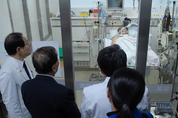 이재오 특임장관이 14일 ‘아덴만의 영웅’ 석해균 선장이 입원해 치료를 받고 있는 수원 아주대병원을 찾아 석 선장의 가족을 위로하고 의료진을 격려했다. 이 장관은 먼저 석 선장의 병실을 찾아 의료진으로부터 석 선장의 상태에 대한 설명을 들은 뒤 “석 선장의 생명만이 아니라 나라를 구한 것”이라며 감사의 뜻을 전했다. 병원 측은 “금주 말부터 회복 가능하다”며 “지금은 일부러 재우고 있고 내일부터 조금씩 깨울 예정”이라고 설명했다. 병원 측은 또 “설 연휴 때는 폐 기능이 스스로 회복됐다고 생각했는데 한번 실패했으니 앞으로는 확신이 들 때 그 다음 단계로 진행하려고 한다”고 말했다. 이 장관은 다른 수술을 막 마친 이국종 외상센터장과 만나 “이 교수님이 정말 큰 일을 해주셨다. 석 선장의 생명 뿐만 아니라 나라를 구한 것”이라고 인사했다. 이 센터장은 ”이렇게 할 수 있게 많은 분들이 도와주셔서 감사하다”고 겸손해했다. 이 장관은 오만에 직접 다녀온 김지영 간호사와도 인사를 나누며 ”고생 많다”고 격려했다. 이어 석 선장의 부인 최진희씨와 둘째아들을 만난 자리에서 “석 선장의 빠른 회복은 국가적으로도 중요한 일”이라며 “미국과 영국도 소말리아 작전에 가서 다