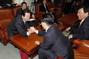 2월 임시국회 정상화가 진통을 거듭하고 있다. 한나라당 김무성, 민주당 박지원 원내대표는 14일 오후 국회에서 회동을 가졌으나 ▲구제역 국정조사 ▲국회 민생특위 등 5개 특위 구성 ▲친수구역특별법을 포함한 5개 법안의 수정·폐기 등 쟁점을 놓고 이견을 좁히지 못했다. 박 원내대표는 “구제역의 심각성이 하루가 다르게 드러나고 있어 국정조사를 해야 한다”고 요구했으나 김 원내대표는 “구제역이 진정된 게 아니고 환경오염 등 2차 피해대책이 마련되고 있는 상황인 만큼 다음에 하자”며 반대한 것으로 알려졌다. 또 국회 민생특위를 비롯해 남북관계·국민연금·공항주변 민원해소대책·정치개혁특위 등 5개 특위의 경우 민주당의 구성 요구를 한나라당이 원칙적으로 수용했으나 구성 방안을 놓고 의견이 갈렸다. 민주당은 위원장을 제외한 24명의 특위위원을 여야 동수로 할 것을 제안했으나 한나라당은 의석수에 따라 한나라당 14명, 민주당 7명, 기타 교섭단체 3명으로 하자고 주장했다. 김 원내대표는 회동 뒤 기자간담회에서 “한나라당은 171석이고 민주당은 86석인만큼 특위도 교섭단체 비율대로 2대1로 해야 한다”고 밝혔으나 민주당 박기춘 원내수석부대표는 “한나라당이 어제는 민생특위를 3