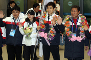 2011 아스타나-알마티 동계아시안게임에서 종합 3위 수성에 성공한 한국 선수단이 7일 금의환향했다. 김종욱(한국체대 총장) 선수단장이 이끄는 선수단 본단은 이날 오전 인천공항을 통해 시민들의 환영을 받으며 귀국했다. 한국 선수단은 이번 대회에서 역대 최다인 13개의 금메달을 수확하며 종합 3위를 지켰다. 목표치였던 금메달 11개를 2개나 초과했고 은메달 12개, 동메달 13개를 보태 지난 대회 우승팀인 중국(금메달 11개)을 멀찍이 제쳤다. 2위를 기록했던 1999년 강원 대회의 성적(금 11·은 10·동 14)을 뛰어넘어 동계아시안게임 25년 역사상 가장 많은 메달을 따는 큰 성과를 올렸다. 김종욱 단장 등 선수단 임원을 비롯해 스피드스케이팅 3관왕 이승훈(한국체대)과 알파인스키 2관왕 김선주(경기도체육회), 크로스컨트리 사상 첫 금메달리스트 이채원(하이원) 등 30여명의 선수단은 공항에 도착하자마자 가벼운 인사를 나누고 곧장 해산했다. 6일 알마티에서 해단식을 열고 대회 성과를 자축한 선수단은 공항에서는 따로 행사를 열지 않았다. 하지만 박수를 보내는 시민들에게 손을 흔들어 답례하고 함께 사진을 찍는 등 성원에 감사의 마음을 전했다. 김종욱 단장은 “아
