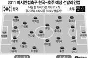 바레인과 1차전을 승리로 장식한 한국 축구대표팀이 14일 밤 10시15분 ‘사커루’ 호주를 상대로 2차전을 치른다. 카타르 도하의 알가라파 스타디움에서 열리는 제15회 아시안컵 축구대회 조별리그 C조 2차전 한국과 호주의 경기는 조 1위를 결정짓는 승부가 될 전망이다. 첫 경기에서 나란히 바레인, 인도를 물리친 한국과 호주는 객관적인 전력에서 나머지 두 팀에 앞서고 있어 이날 경기에서 이기는 쪽이 조 1위를 차지할 가능성이 크다. 국제축구연맹(FIFA) 순위 26위 호주는 40위인 한국보다 앞서 있으며 23명 엔트리 가운데 해외파가 19명이나 될 만큼 선수들의 경력도 화려하다. 한국은 바레인과 1차전과 비교해 선발 출전하는 11명에 큰 변화가 없을 것으로 보인다. 그러나 곽태휘(교토상가)가 1차전에서 퇴장을 당하는 바람에 조용형(알라얀)이 그 자리를 메울 것으로 보인다. 한국은 호주를 반드시 이겨야 8강 이후 일정을 편하게 만들 수 있다. 호주를 물리치면 최약체 인도와 3차전만 남겨 사실상 조 1위를 확정 짓는 한국은 D조 2위와 8강에서 만난다. D조에서 가장 전력이 탄탄한 것으로 평가되는 이란이 1승으로 단독 1위에 나섰기 때문에 한국으로서는 이왕이면 조