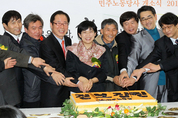 ■‘정동기 사퇴’ 의견 피력 한나라당 중앙위원회의 12일 신년하례회에는 여권의 ‘잠룡’들이 대거 출동해 눈길을 끌었다. 직능기구인 당 중앙위는 총 5천여명의 회원을 거느린 당내 최대조직이고, 대선후보 경선 선거인단의 5%가량을 차지하는 핵심 표밭이기도 하다. 오전 종로구 한 컨벤션센터에서 열린 행사에는 안상수 대표 등 당 지도부와 정몽준 전 대표, 오세훈 서울시장, 김문수 경기지사, 이재오 특임장관 등 여권 대권주자들이 대거 참석해 ‘대선 경선’을 방불케 했다. 박근혜 전 대표는 불참했다. 이들은 기자들로부터 정동기 감사원장 후보의 자진사퇴와 관련한 질문을 받고 각자 의견을 피력했다. 오세훈 서울시장은 “국민의 뜻이 받아들여진 것 아닌가”라고 말했다. 김문수 경기지사는 “당이 정 후보자에 대해 문제가 있다고 생각한 것이니 발표한게 적절하다고 본다”고 밝혔다. 그는 인사 책임론에는 “인사 자체가 부적절하다”면서 “인사시스템이 부적절한 것 아니냐”는 질문에는 “보도에 따르면 적절하지 않은 것 아닌가”라고 반문했다. FIFA(국제축구연맹) 부회장 선거 패배 후 공식행사에 처음 참석한 정몽준 전 대표는 이번 사태와 관련해 책임질 사람이 있는지에 대해 “본인들이 잘