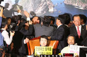 국회 국토해양위의 2일 전체회의는 4대강 사업의 핵심 법안인 ‘친수구역 활용에 관한 특별법(친수법)’ 상정을 놓고 여야가 충돌하면서 파행했다. 한나라당이 이날 친수법의 단독 상정을 예고하자 이에 반대하는 민주당과 민주노동당 의원 10여명은 회의 시작 30분 전인 오전 9시30분부터 국토위원장석을 점거, 실력 저지에 나섰다. 한나라당 백성운 의원이 발의한 친수법은 4대강 하천 경계로부터 2km 안팎에 있는 지역을 수자원공사 등 공공기관이 ‘친수구역’으로 지정해 주택·관광시설 등을 개발할 수 있도록 하는 것이다. 야당은 이 법이 “수자원공사가 4대강 살리기 사업비로 투자하는 8조원을 하천 주변지역 개발을 통해 회수할 수 있도록 하는 특혜 지원법”이라며 상정 자체를 반대하고 있다. 민주당 간사인 최규성 의원은 “여야간 합의도 안된 회의를 여는 것은 안된다”며 “지금 상정하게 되면 본회의에 직권상정될 가능성이 높다”고 목소리를 높였다. 한나라당 의원들이 야당 의원들을 향해 “자리에 앉으라”, “더이상 이런 모습 보이