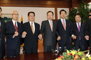 한미 FTA(자유무역협정) 재협상 여부를 놓고 내홍을 겪었던 민주당이 `비준 거부‘ 쪽으로 가닥을 잡았다. 특히 자유선진당 등 다른 야당도 비준에 부정적 입장을 보이고 있어 여야 국회의원 압수수색 사태에 이어 또한번 야권 공조가 구축될지 주목된다. 민주당은 9일 한국 정부가 자동차 분야에서 미국측 요구를 일부 수용할 것이라는 소식을 접하자 긴급 최고위원회를 열어 대책을 논의했다. 이날 회의에서는 손학규 대표, 정세균 최고위원 등 기존 한미 FTA 찬성론자들 마저도 정부의 추가협의 내용을 비판하며 `비준 불가‘ 입장을 표명했다. 손 대표는 “일방적 양보에 그치는 한미 FTA를 결코 받아들일 수 없다”며 “이런 조건에서는 한미 FTA 비준은 더 말할 것도 없고 한미 FTA에 대한 전면적 재검토가 불가피하다”고 밝혔다. 정 최고위원도 “현재의 재협상은 국익과 국민의 자존심 면에서 심각한 문제가 있다”며 “자동차를 양보해 버리면 `앙꼬없는 찐빵‘이 돼버리기 때문에 이런 식의 퍼주기식 재협상이라면 기존 당론(선 대책 후 비준)을 재점검할 필요가 있다”