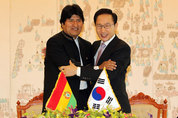 이명박 대통령과 방한중인 후안 에보 모랄레스 아이마 볼리비아 대통령은 26일 청와대에서 정상회담을 갖고 볼리비아 리튬 자원 개발 및 산업화 연구에 한국 기업이 참여하는 데 합의했다. 이 대통령은 모랄레스 대통령이 자국내 리튬 개발 및 산업화 연구에 한국 기업이 참여할 수 있도록 관심과 지원을 아끼지 않은 데 대해 사의를 표했고, 모랄레스 대통령은 볼리비아 리튬 자원 개발 및 산업화 실현 방안을 연구하는 과정에서 한국 기업과 연구소가 보여준 열의를 높이 평가했다고 배석자들이 전했다. 양국 정상은 회담 직후 한국광물자원공사와 볼리비아광물공사가 ‘우유니 소금광산의 증발자원 산업화 연구개발에 관한 양해각서’를 체결하는 자리에 임석, 이번 양해각서 체결로 우유니 호수 리튬 개발을 위한 양국간 협력이 본격적으로 추진되는 기반이 마련됐다고 평가하고 앞으로 협력를 더욱 강화키로 했다. 양해각서에는 일단 양국이 리튬 자원의 산업화 연구를 위한 공동위원회를 구성하는 동시에 한국기업 컨소시엄이 리튬배터리 관련 산업화 프로젝트를 제안하고 시험공장 연구에 참여하는 내용이 담겨있다. 세계 최대의 리튬 자원 보유국인 볼리비아 서부에 위치한 우유니 호수에는 세계 리튬 부존량의 절반 가까