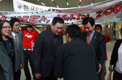 한국 축구대표팀이 한국의 월드컵 출전 사상 첫 ‘원정 16강’ 진출 꿈을 다지려고 남아프리카공화국-스페인으로 이어지는 20여 일에 이르는 전지훈련에 들어갔다. 허정무 감독이 이끄는 대표팀 선수 25명은 17시간여의 비행 끝에 5일 오후 남아프리카공화국 요하네스버그 국제공항에 도착했다. 오는 6월 2010 남아프리카공화국 월드컵을 6개월여 앞둔 축구대표팀의 첫 남아공 입성이다. 공항에는 요하네스버그에 사는 교민 30여 명이 나와 허정무 감독에게 꽃다발을 전해주고 ‘대∼한민국’ 등을 외치며 환영해줬다. 국내 K-리거 22명과 일본 프로축구 J-리그에서 뛰는 선수 3명 등 25명의 태극전사는 장거리 비행으로 여독이 쌓였음에도 교민들과 함께 사진을 찍는 등 화기애애한 분위기를 연출했다. 허정무 감독은 도착 직후 인터뷰에서 “6월 월드컵 본선 경기를 치를 곳에 왔다. 선수들이 현지 분위기에 익숙해졌으면 좋겠다. 기분은 좋다”고 입성 소감을 전했다. 허 감독은 이어 “본선 경기를 대비해 현지 날씨와 고지대 등 주변 환경에 익숙해지는 데 훈련의 중점을 두겠다”고 언급하고 전지훈련