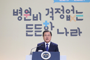 문재인 대통령은 12일 "가계의 의료비 부담을 더욱 줄여주기 위해서는 건강보험의 보장성이 더욱 강화돼야 한다"고 밝혔다. 문 대통령은 이날 오전 청와대에서 주재한 '건강보험 보장성 강화대책 4주년 성과 보고대회'에서 이같이 말한 데 이어 "진료기술이 발전하고 의료서비스가 세분화되면서 새로 생겨나는 비급여 항목이 많다"고 짚었다. 그러면서 갑상선과 부비동 초음파 검사의 경우 올 4분기부터, 중증 심장질환, 중증 건선, 치과 신경치료 등 필수 진료의 경우 내년까지 부담을 각각 완화하겠다는 방침을 밝혔다. 문 대통령은 "어린이들을 위한 전문적인 진료도 빠르게 확충하겠다"며 "또 올 하반기에 지역 중증거점병원을 지정해 중증환자가 가까운 곳에서 치료받을 수 있도록 하겠다"고 했다. 나아가 "소득이 낮을수록 재난적 의료비를 더 많이 지원받을 수 있도록 소득수준별 지원비율도 조정하겠다"고 말했다. 이날 보고대회는 '병원비 걱정없는 든든한 나라'를 구호로 내걸고 추진해온 건강보험 보장성 강화대책, 이른바 '문재인 케어'의 지난 4년을 돌아보고 보완할 과제를 설명하기 위해 마련됐다. 문 대통령은 취임 첫해인 2017년 8월 '문재인 케어'를 발표했고, 2019년 7월 2주년