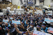 9일 오전부터 무기한 전면 파업에 돌입한 택배 노동자들이 "택배사들은 '공짜 노동'인 분류 작업을 책임지고 과로사 방지 대책을 즉각 이행하라"고 촉구했다. 전국택배노동조합은 이날 서울 송파구 장지동 복합물류센터에서 노조원 2천여명이 모인 가운데 총파업 결의대회를 열었다. 전날 택배 기사 과로사 문제를 둘러싼 정부와 택배 노사 간 사회적 합의가 불발되자, 택배노조는 이날부터 무기한 전면 파업에 돌입하겠다고 밝혔다. 쟁의권이 없는 조합원들은 오전 9시 출근·11시 배송 출발 등 노동시간을 단축하는 방식으로 투장하기로 했다. 노조는 "택배사와 우정사업본부는 분류작업에 택배노동자를 내몰아 수십 년간 막대한 이익을 얻어왔다"며 "과로사 방지대책 적용 시점을 1년 유예해달라는 주장은 노동자들을 장시간 노동과 과로사 위험에 방치하겠다는 것"이라고 비판했다. 노조에 따르면 이날 오전 조합원 5천310명을 대상으로 진행한 파업 찬반투표에서 찬성이 전체의 92.3%(4천901표)로 나타나 총파업이 가결됐다. 노조는 "사회적 합의문을 가장 모범적으로 수행해야 할 우정사업본부가 '자체 연구용역 결과가 있어야 한다'는 이유로 지금까지 단 1명의 분류인력도 투입하지 않았다"며 "분류