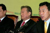 대통합민주신당과 민주당이 11일 신설 합당 방식을 통한 양당 통합에 전격 합의했다. 중도진보 진영이 총선을 58일 남겨놓고 통합됨에 따라 선거구도는 한나라당과 새롭게 탄생할 신당의 양강구도에 자유선진당, 민주노동당이 가세하는 4당 체제로 재편됐다. 신당 손학규 대표와 민주당 박상천 대표는 이날 국회에서 ‘통합과 쇄신을 위한 공동선언식’을 갖고 양당 통합을 공식 선언했다. 양당 통합은 지난 2003년 9월20일 열린우리당 창당을 주도했던 새천년민주당 내 신당파가 ‘국민참여통합신당’으로 국회에 교섭단체를 등록하면서 옛 민주당이 갈라선지 꼭 4년 5개월만에 이뤄진 것. 양당은 공동선언문을 통해 “한나라당이 대통령 권력과 지방정부 권력을 이미 장악했고, 4월 총선에서 개헌선(200석)이 넘는 국회의석까지 장악할 경우 민주정치의 요소인 복수정당 제도가 사실상 유명무실해져 민주주의에 위기가 조성될 것”이라며 “이에 우리는 강력한 중도개혁 통합정당을 결성키로 합의했다”고 말했다. 양당은 통합정당의 당명을 ‘통합민주당’(약칭 민주당)으로, 정책노선은 경제성장과 소외계