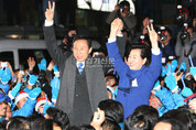 19일 밤 11시 32분 현재, ‘이변은 없었다’ 이명박 후보는 19일 오후 전국 249개 개표구별로 진행된 개표 결과 89.0%의 개표가 완료된 밤 11시32분 현재 득표율 48.1%인 1천11만1천925표를 얻어, 560만8천735표로 26.7%를 투표한 대통합민주신당 정동영 후보를 450만3천190표차로 크게 따돌리고 사실상 당선을 확정지었다. 무소속 이회창 후보는 318만2천846표(15.2%)를 얻어 3위를 달리고 있다. 4위는 창조한국당 문국현 후보로 120만2천529표(5.7%), 5위는 민주노동당 권영길 후보가 63만440표(3.0%), 6위는 민주당 이인제 후보가 14만7천446표(0.7%)의 득표로 그 뒤를 잇고 있다. 이 추세대로 개표가 진행될 땐 이 후보의 과반 득표 가능성까지 예측된다. 표차 역시 450만표에 달할 것으로 예상했다. 지난 1987년 대통령 직선제가 부활된 후 5차례의 선거에서 과반 득표 당선자는 한명도 없었고, 역대 최다 득표차는 지난 13대 대선때 1위 노태우, 2위 김영삼 후보간의 194만5천157표였다. 이 후보의 당선으로 한나라당은 지난 1997년과 2002년 연거푸 대선에서 고배를 마신 뒤