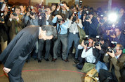 “왕년의 도망자…” 행선지 추적 기자에 농담도 산사 칩거 닷새만인 19일 탈당 선언을 위해 공식 석상에 모습을 드러낸 한나라당 손학규 전 경기지사는 다소 그을린 듯한 얼굴이었지만 표정은 차분하면서도 밝았다. 그는 회견에 앞서 기자들에게 “잠도 못 자고 저를 쫓아다니느라 고생하셨다. 제가 안거하려고 했는데 만행을 했다”며 “제가 왕년에 도망자 생활을 2년이나 했는데 여러분이 저를 쉽게 잡을 것 같냐”는 농담을 건넸다. 50여명의 사진 기자들이 단상을 점령하다시피 한 채 플래시 세례를 퍼부었지만 자연스런 포즈도 취해보였다. 기자회견 장소로 ‘백범 기념관’을 선택한 이유를 따로 설명하진 않았다. 하지만 회견문에는 “당파에 집착하지 않고 오직 나라만을 생각한 백범의 정신을 따르고자 한다”는 내용을 담았다. 회견장소는 특히 제3의 정치세력 ‘전진코리아’가 창립대회를 가진 곳이어서 눈길을 끌었다. 지지자 100여명의 박수와 함께 단상에 오른 그는 차분하고 단호한 목소리로 회견문을 읽어갔다. “나 자신을 버리겠다&rdqu