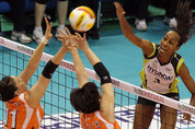 수원 현대건설이 외국인 용병 케니와 맏언니 한유미의 활약에 힘입어 프로배구 출범이후 첫 우승에 한발 더 다가섰다. 현대건설은 11일 대전 충무체육관에서 열린 NH농협 2009~2010 V리그 여자부 챔피언결정전 3차전에서 원정경기에서 케니(34점)와 한유미(24점)가 58점을 합작, 몬타뇨가 43점으로 분적한 대전 KT&G에 세트스코어 3-2(25-19 27-29 25-16 25-27 15-12)로 신승을 거뒀다. 이로써 현대건설은 7전4선승제로 진행되는 이번 챔피언결정전에서 2승1패로 앞서나갔다. 첫 세트에 한유미, 케니의 공격에 양효진의 블로킹과 윤혜숙의 오픈공격이 가세하며 25-19로 세트를 가져한 현대건설은 2세트들어 상대 블로킹에 공격이 차단되며 팽팽한 접전을 이어가다 4차례 듀스 접전 끝에 27-29로 세트를 내줬다. 3세트에 팀을 재정비한 현대건설은 케니, 윤혜숙의 공격이 살아나며 초반부터 리드를 잡아나갔고 양효진의 오버네트를 항의하던 KT7G 박삼용 감독이 레드카드를 받고 세트 퇴장을 당하면서 완전히 분위기를 가져와 25-16으로 가볍게 세트를 따냈다. 그러나 현대건설은 4세트에 김세영의 블로킹을 앞세운 KT&G의 벽을 넘지 못한
