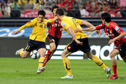 ‘인천의 앙리’ 강수일이 멀티골을 기록하며 팀의 리그컵대회 첫 승을 이끌었다. 인천 유나이티드는 26일 인천월드컵경기장에서 열린 포스코컵 2010 조별리그 C조 2라운드 대구FC와의 경기에서 강수일이 2골을 뽑아낸 데 힘입어 3-2, 신승을 거뒀다. 이로써 인천은 정규리그 포함 6경기 연속 무패(5승1무)의 상승가도를 이어가며 컵대회 8강 진출을 위한 교두보를 마련했으며 시민구단 라이벌 대구와의 맞대결에서도 7승8무5패의 리드를 지키며 팀의 코스닥 상장 도전을 자축했다. 1라운드를 쉬고 2라운드에 첫 경기를 가진 인천은 유병수와 브루노를 투톱으로 세우고 전반 초반부터 대구를 강하게 몰아붙였고 전반 26분 강수일과 브루노의 콤비 플레이로 선제골을 뽑아냈다. 브루노가 상대 수비수 2명을 끌고 왼쪽 측면을 돌파한 뒤 상대 골키퍼가 앞쪽으로 나온 것을 보고 중앙으로 낮은 크로스를 찔러주자 강수일이 달려들며 볼을 가볍게 골문안으로 밀어넣은 것. 기세가 오른 인천은 공격 강도를 높였고 전반 39분 페널티 지역 우측에서 상대 수비수가 볼 처리에 우물쭈물하는 사이 이준영이 그대로 왼발슛을 날려 팀의 두번째 골을 뽑아냈다. 2-0으로 전반을 마친 인천은