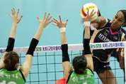올 시즌 프로배구 여자부 최강팀으로 환골탈태(換骨奪胎)한 수원 현대건설이 9연승을 질주하며 선두자리를 굳게 지켰다. 현대건설은 6일 수원실내체육관에서 열린 NH농협 2009~2010 V-리그 여자부 3라운드 홈경기에서 이날 생일을 맞은 용병 케니(26점)와 양효진(17점)의 활약을 앞세워 서울 GS칼텍스에 3-1(26-24 22-25 25-13 25-23)로 승리했다. 이로써 지난해 11월 28일 GS칼텍스와 수원 홈경기를 시작으로 9연승을 내달린 12승1패로 정규리그 우승을 향한 독주체제에 돌입했다. 현대건설의 9연승은 팀 최다 기록이다. 김수지의 속공으로 먼저 1점을 따낸 현대건설은 근소한 리드를 유지하며 연패 탈출의 강한 의지를 보인 GS칼텍스와 팽팽한 접전을 이어가다 24-24 듀스에서 케니가 연속으로 시간차공격과 속공을 성공시키며 세트를 가져갔다. 그러나 현대건설은 2세트 들어 GS칼텍스 수비진의 몸을 던진 방어와 나혜원, 김민지 등의 두뇌플레이에 밀리며 세트 중반부터 끌려가기 시작해 결국 22-25로 세트를 내줘 승부를 원점으로 돌렸다. 하지만 3세트 들어 수비의 안정을 되찾은 현대건설은 해결사 케니와 양효진의 강타가 살아나면서 25-13으로 가볍