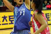 안산 신한은행이 부천 신세계를 제물 삼아 파죽의 7연승을 달리며 고공비행을 계속했다. 신한은행은 11일 경남 사천 삼천포체육관에서 열린 KB국민은행 2008~2009 여자프로농구 정규리그 중립 경기에서 26점을 몰아넣은 정선민을 앞세워 신세계를 81-62로 물리쳤다. 이로써 신한은행은 파죽의 7연승으로 단독선두를 질주하며 시즌 25승3패를 기록, 2위 구리 금호생명(18승9패)과 격차를 6.5경기 차로 벌렸다. 반면 연승을 노렸던 신세계는 신한은행의 벽을 넘지 못하고 11승16패로 4위에 머물렀다. 신한은행이 막강 전력과 탄탄한 조직력으로 신세계를 거세게 몰아붙였다. 2쿼터 중반 24-21의 불안한 리드를 지키던 신한은행은 선수민과 정선민, 김단비의 득점 행진으로 30-21, 9점차로 달아났다. 반격에 나선 신세계는 ‘총알 가드’ 김지윤의 빠른 경기 조율로 점수를 착실히 쌓아 순식간에 32-32로 균형을 맞췄다. 하지만 신한은행에는 ‘바스켓 퀸’ 정선민과 ‘주부 가드’ 전주원, ‘장신 센터’ 하은주가 있었다. 신한은행은 골밑슛과 자유투 1개를 꽂아넣은 정선민을 앞세워 전반을 35-32의 박빙의 리드로 마쳤고 3쿼터 후반부터 신세계의 코트를 맹폭했다. 전주원이