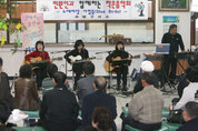 수원구치소 민원실에 모처럼 아름다운 선율이 흘러 민원실을 찾은 민원인들에게 잔잔한 감동을 선사했다. 수원구치소(소장 송영삼)는 8일 오후 1시부터 소내 민원봉사실에서 ‘민원인과 함께하는 작은 음악회’를 개최했다. 이날 음악회는 민원봉사실을 찾는 민원인들에게 격조높은 대중음악을 선사해 가족·친지의 구속으로 불안하고 초조한 심정을 안정시켜 주기 위해 마련됐다. 안양시 봉사단체로 등록돼 지역 사회에 많은 봉사활동을 하고 있는 ‘노래마당 사람들’의 포크송 공연으로 시작된 이날 음악회에서는 ‘폴링 인 러브’ 등 색소폰 연주도 함께 공연돼 1시간 동안 민원인들에게 잔잔한 감동을 주고 큰 박수를 받기도 했다. 또 수원구치소 교정협의회 김주성 수석부회장 등 교정위원 5명이 떡과 음료를 준비해 구치소를 찾은 민원인들에게 무료로 제공해 큰 호응을 얻었다. 특히 송영삼 소장의 공연이 진행되는 동안 민원인들과 함께 음악을 감상해 눈길을 끌었다. 이날 봉사활동에 참가한 ‘노래마당 사람들’은 안양시 및 인근 의왕시 지역에서 열리는 각종 문화예술행사에서 수십회 공연을 갖는 등 지역문화예술