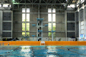천장에 임시 그물망 친 수원월드컵스포츠센터 수영장