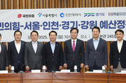 국회의 내년도 예산안 본격 심사를 앞두고 국민의힘은 2일 수도권 및 강원 지역 예산정책협의회를 열어 이재명 정부의 ‘포퓰리즘’ 정책에 맞서는 성장 대책과 민생예산 확보 등을 논의했다. 국회에서 열린 이날 협의회에는 당에서 송언석 원내대표와 김도읍 정책위의장, 김선교(여주양평) 경기도당위원장, 송석준(이천)·배준영(인천 중강화옹진) 의원, 박종진(인천 서을) 인천시당위원장 등이 참석했고, 유정복 인천시장과 오세훈 서울시장, 김진태 강원지사, 김성중 경기도 행정1부지사 등이 함께 했다. 송 원내대표는 인사말을 통해 “지금 우리 경제와 외교·안보 모두 중대한 변곡점에 서 있다”며 “국민이 체감하는 민생 경제는 여전히 어렵고 재정은 파탄을 향해 가고 있다”고 밝혔다. 그는 이어 “이재명 정부가 보여준 경제정책은 내로남불식 부동산 규제와 재정 살포 수준에 머물러있다”며 “지금 필요한 것은 포퓰리즘 정책이 아니라 근본적인 성장대책”이라고 강조했다. 특히 “10·15 부동산 대책으로 거래가 아예 막혀버린 서울·경기 남부 일부 지역은 서민들이 이용하는 전월세 가격이 예상대로 폭등하기 시작했다”며 “규제에서 벗어나 있던 경기도에선 풍선효과로 집값이 급등할 조짐을 보인다”고