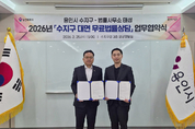 용인특례시 수지구는 3월부터 구민을 대상으로 변호사가 상담하는 ‘대면 무료법률 상담’을 운영한다고 26일 밝혔다. 이를 위해 구는 25일 수지구청에서 지역 법률사무소 태성과 업무협약을 체결했다. 협약에 따라 법률사무소 태성 소속 변호사가 수지구청을 방문해 구민을 대상으로 1대1 맞춤형 법률 상담을 진행하게 된다. 구는 그동안 구청 누리집을 통해 부동산, 가사, 채권·채무 등 생활과 밀접한 분야에 대해 온라인 무료법률 상담을 지원해 왔다. 대면 상담은 3월부터 올해 말까지 격월 셋째 주 월요일마다 운영되며, 수지구청 누리집을 통해 사전 신청을 받은 뒤 지정된 장소에서 진행된다. 수지구민 누구나 무료로 이용할 수 있으나, 재판이 진행 중인 사건은 상담 대상에서 제외된다. 김창회 자치행정과장은 “온라인 상담과 대면 상담을 병행 운영해 구민들이 상황과 필요에 맞는 방식으로 법률적 도움을 받을 수 있도록 지원하겠다”고 말했다. [ 경기신문 = 최정용 기자 ]