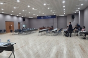 경기도버스노조협의회(노조)와 경기도버스운송사업조합회(조합회)의 최종 조정회의가 하루를 넘겼음에도 의견이 좁혀지지 않으며 '밤샘 협의'가 이어지고 있다. 1일 경기신문 취재에 따르면 전날인 지난달 30일 오후 4시부터 경기지방노동위원회에서는 노조와 조합회간 조정회의가 진행됐다. 회의는 이날 오전 12시까지 하루를 넘겨가며 진행됐지만 별다른 절충안이 나오지 않은 것으로 파악됐다. 이에 양측은 협의 기간을 최대 오전 6시까지 연장한 후 의견을 도출하고 있다. 앞서 지난달 30일 오후 8시쯤 저녁식사 후 본격적인 협상에 돌입했다. 희의실 문이 닫히자 노조 조합원들은 회의실 앞에서 '동일임금 쟁취하자', '버스 노동자도 인간이다. 주5일제 시행하라' 등 구호를 외치며 농성을 진행했다. 양측의 협의는 순조롭게 진행되는 듯 보였다. 실제 한 관계자는 "협의 분위기가 부드러운 상황"이라고 전했다. 그러나 협의안은 좁혀지지 않았고, 결국 이날 오전 12시 노조 측은 "전혀 해결된 것이 없다"며 조정회의실을 빠져나왔으며 조정회의실 앞에 모여 '당장 조정을 중단하라'고 요구하기도 했다. 노조에는 경기도내 50개 업체 소속 약 1만 대의 버스가 속해있다. 협상 결렬로 경기도 전체