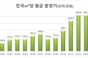 올해 1월 기준 전국 민간 아파트의 최근 1년간 평균 분양가가 5개월 만에 하락 전환한 것으로 나타났다. 5일 부동산 분양 평가업체 리얼하우스가 청약홈 데이터를 분석한 결과에 따르면, 2025년 1월부터 2026년 1월까지 1년간 전국 민간 아파트의 ㎡당 평균 분양가는 842만 9000 원으로 집계됐다. 이는 지난해 8월 774만 6000 원을 시작으로 9월 777만 9000 원, 10월 798만 1000 원, 11월 826만 9000 원, 12월 843만 원까지 4개월 연속 상승세를 보이다가 1월 들어 하락 전환한 것이다. 전용면적 84㎡ 기준으로 전국 아파트의 평균 분양가는 7억 770만 원으로 조사됐다. 서울은 같은 면적 기준 평균 18억 8971만 원으로 나타났다. 특히 서울 전용 84㎡ 아파트의 평균 분양가는 지난해 12월 19억 493만 원에서 한 달 만에 18억 원대로 내려오며 하락 폭을 보였다. [ 경기신문 = 성은숙 기자 ]