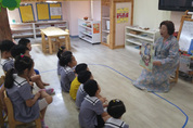 지난 5일 수원 연세유치원 흥미진진한 옛이야기에 귀 쫑긋 “더 해주세요” 아이들 조르기도 도내 이야기 할머니 438명 활동 김경희 할머니 “70세 바라보는 나이에 사회활동 보람 있다” 한국국학진흥원 “많은 지역에서 무릎교육 통한 올바른 인성교육 취지 공감하고 동참하길 기대” “옛날 옛날에 백결이란 사람이 있었어요. 백결의 거문고 소리가 집 밖으로 퍼지면 마을 사람들은 행복한 기분이 들었어요. 쿵더덩 쿵더덕 쿵쿵 쿵더덩 쿵더덕 쿵쿵.” 5, 6살 아이들에게 이야기를 들려주는 선생님은 희끗희끗한 머리카락에 곱게 한복을 입은 할머니다. 할머니가 들려주는 흥미진진한 옛날이야기에 아이들은 “떡방아가 뭐예요”, “저도 텔레비전에서 거문고 봤어요”라며 호기심 가득한 눈으로 경청하며 한자리를 지키고 있는 모습에 절로 미소가 지어진다. 지난 5일 이야기할머니 수업이 한창인 수원의 연세유치원 풍경은 할머니 무릎 아래서 재미있고 신기한 옛날 이야기를 들으며 잠들었던 옛모습과 닮아 있었다. 이야기할머니들이 유아교육기관을 찾아가 선현들의 미담 및 전래동화