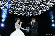 배우 윤상현(42)과 가수 겸 작사가 메이비(본명 김은지·36)가 지난 8일 화촉을 밝혔다. 두 사람은 이날 오후 광진구 광장동 쉐라톤 그랜드 워커힐 비스타홀에서 가족과 친지, 이보영·이종석·박하선·지상렬·백지영·엠블랙의 이준, 민경훈 등 동료 연예인들의 축복 속에 백년가약을 맺었다. 이날 결혼식은 마치 한 편의 뮤지컬처럼 꾸며졌다. 두 사람은 결혼을 기념해 만든 노래 ‘봉숭아 물들다’를 듀엣으로 부르며 함께 등장했다. 또 서로에게 쓴 편지를 낭독하며 첫 만남과 교제 기간의 추억을 공개했고, 중간 중간 케이윌과 나윤권, KBS 2TV ‘인간의 조건’ 출연팀이 축가를 선사했다. 은지원·이현우·봉태규 등 ‘인간의 조건’ 출연팀이 남진의 ‘님과 함께’를 선사하자 윤상현은 함께 춤을 추기도 했다. 주례는 지인들이 두 사람에게 당부하는 영상 편지로 대신했으며 성혼선언문은 서로에게 바라는 점을 적어 낭독했다. 지난해 4월 소개로 만나 7월부터 교제한 두 사람은 윤상현이 SBS TV ‘힐링캠프’에서 “결혼을 전제로 만나는 6세 연하의 여자 친구가 있다”고 고백하면서 관심을 불러모았고 상대가 메이비란 사실이 알려지며 화제가 됐다. 신접살림은 경기도 파주에 차릴 예정이다.…