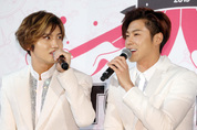 전자음보다 리얼 밴드 사운드 좋아 옛 스타일 현대화 친근하게 변화해 “후배들 귀감 되는 선배 되고 싶어” 데뷔 10주년을 맞은 동방신기(유노윤호, 최강창민)가 눈의 힘을 풀고 어깨를 여유롭게 떨어뜨렸다. 지난 6일 발매한 7집 ‘텐스’(TENSE)의 타이틀곡 ‘섬싱’(Something)은 음악도, 무대 위 멤버들의 표정도 한층 친근해졌다. ‘섬싱’은 빅밴드 사운드의 스윙 장르로 전자음과 랩을 줄이고 밴드 사운드에 보컬을 부각시킨 곡. 추상적인 영어 노랫말에서 벗어나 가사도 친숙해졌다. 덕분에 후렴구 멜로디가 귀에 쏙 들어와 듣기 쉽다. 방송 무대에서 줄을 이용한 고난도 퍼포먼스는 여전히 임팩트있지만 멤버들은 흥겹게 리듬을 타며 윙크를 하거나 엉뚱한 표정도 짓는다. 전작인 5집 ‘왜(Keep Your Head Down)’와 6집 ‘캐치 미’(Catch Me)에서 ‘SMP’(SM Music Performance : SM이 만든 장르로 역동적인 댄스를 특징으로 한 음악)의 틀을 답습했기에 변화가 뚜렷이 감지된다. 최