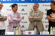 프로축구 최고의 스타들이 나서는 ‘2015 하나은행 K리그 올스타전’을 앞두고 ‘팀 최강희’의 최강희 감독과 ‘팀 슈틸리케’의 슈틸리케 감독이 화끈한 경기를 예고했다. ‘팀 최강희’를 이끄는 최강희 감독과 주장 차두리(FC서울), ‘팀 슈틸리케’의 슈틸리케 감독과 주장 염기훈(수원)은 16일 안산 와∼스타디움에서 기자회견을 가졌다. 최 감독은 이날 기자회견에서 “생각보다 슈틸리케 감독님이 너무 진지하시다. 올스타전이 아니고 A매치가 아닌가 생각된다”며 “기대해도 좋을 것”이라고 올스타전에 임하는 각오를 전했다. 최 감독은 또 “하루 훈련으로 팀을 만드는 것은 어렵지만 중요한 것은 0-0 스코어는 없을 것”이라며 골 잔치를 예고했다. 슈틸리케 감독도 “선수들이 이적을 많이해서 준비하는데 어려움이 있었다. 선발명단도 그래서 공개하기 어렵다”고 아쉬움을 전하면서도 “잘 준비해서 좋은 경기를 하겠다”고 다짐했다. 이어 “전원 수비, 전원