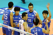 인천 대한항공이 구미 LIG손해보험을 제물로 선두 추격에 속도를 높였다. 대한항공은 14일 경북 구미 박정희체육관에서 열린 NH농협 2014~2015 프로배구 V리그 남자부 원정경기에서 부상 투혼을 벌인 마이클 산체스(34점)와 신영수(15점), 곽승석(14점) 삼각편대를 앞세워 LIG손해보험을 세트스코어 3-1(29-27 20-25 27-25 27-25)로 제압했다. 이로써 대한항공은 9승6패, 승점 29점으로 선두 대전 삼성화재(승점 31점)에 승점 2점 차로 바짝 따라붙었다. 대한항공은 김형우의 연속 블로킹 득점으로 앞서가다 LIG손보의 정기혁에게 블로킹 득점을 내주며 17-17로 동점을 허용했다. 이후 시소게임을 펼치며 팽팽한 접전을 이어가던 대한항공은 23-23에서 LIG손해보험의 용병 토마스 에드가(25점)에게 후위공격을 허용하며 세트 포인트에 몰렸다. 벼랑 끝에 몰린 대한항공은 김요한(17점)의 공격을 산체스가 블로킹하며 네트 안테나를 건드려 그대로 세트를 내주는 듯 했지만 주심이 블로킹 성공을 판정했다. LIG손해보험 측이 산체스가 블로킹 과정에서 오른팔로 네트 안테나를 건드렸다며 강하게 항의해 경기는 10분 이상 경기가 중단됐지만 양 팀 모두