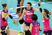 인천 흥국생명이 치열한 선두경쟁이 벌어지고 있는 프로배구 여자부에서 최하위 대전 KGC인삼공사를 5연패에 빠트리며 단독 선두로 뛰어올랐다. 흥국생명은 1일 인천 계양체육관에서 열린 NH농협 2014~2015 프로배구 V리그 여자부 홈 경기에서 KGC인삼공사를 세트 스코어 3-0(25-15 25-22 25-20)으로 완파했다. 2연승을 달린 흥국생명은 6승 4패, 승점 18점으로 화성 IBK기업은행(6승 4패·승점 18점)과 승점 및 승수가 같았지만 세트 득실률에서 1.438로 1.278의 IBK기업은행과 수원 현대건설(7승 2패·승점 17점), 성남 한국도로공사(6승 3패·승점 16)를 밀어내고 단숨에 선두로 올라섰다. 흥국생명은 인삼공사의 목적타 서브로 외국인 용병 레이첼 루크(27점·호주) 다음으로 주 득점원인 이재영이 15점을 얻는 데 그쳤지만 센터 김혜진(7점)이 높은 공격 점유율을 선보이며 값진 승점 3점을 챙겼다. 김혜진은 1세트 6-6에서 균형을 깨는 시간차 공격을 성공시키며 팀이 20-15에서 달아나는 데 기여했고 이후에도 이동 속공을 밀어넣는 등 고비마다 활약했다. 김혜진이 1세트에 공격 점유
