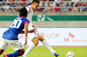 한국 청소년 대표팀이 2014 아시아축구연맹(AFC) 16세 이하(U-16) 챔피언십에서 숙적 일본을 완파하고 4강에 진출, 내년 칠레에서 열리는 국제축구연맹(FIFA) 17세 이하(U-17) 월드컵 출전권을 획득했다. 최진철 감독이 이끄는 한국 U-16 대표팀은 14일 태국 방콕 라자망가라 국립경기장에서 열린 AFC U-16 챔피언십 8강전에서 혼자 2골을 뽑아내며 원맨쇼를 펼친 이승우(FC 바르셀로나 후베닐 A)의 활약에 힘입어 일본에 2-0으로 승리했다. 이로써 한국은 오는 17일 같은 장소에서 시리아-우즈베키스탄 승자와 준결승전을 치르게 됐다. 또 4강 진출에 성공하며 지난 2009년 이후 6년 만에 FIFA U-17 월드컵에 출전하게 됐다. 한국은 전반 초반 짧은 패스로 볼 점유율을 높인 일본에 경기 주도권을 내주며 끌려갔다. 전반 21분 일본 진영에서 한번에 넘어올 볼이 크로스로 연결되며 실점 위기를 맞은 한국은 골키퍼 안준수의 빠른 판단으로 위기를 넘겼다. 일본의 공세에 좀처럼 득점 기회를 잡지 못하던 한국은 전반 41분 상대 페널티지역 안에서 김정민(서울 신천중)이 찔러준 패스를 달려들던 이승우가 골로 연결시켜 1-0으로 전반을 마쳤다. 리드를