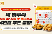 BBQ가 10월 마지막 ‘669데이’에도 할인 혜택을 제공한다. 제너시스BBQ그룹은 오는 29일 BBQ앱 및 웹사이트에서 시그니처 메뉴 황금올리브치킨과 황금올리브치킨 핫 크리스피 2종 주문 시 4000원 할인 혜택을 제공한다고 28일 밝혔다. 쿠폰은 해당 날짜에 쿠폰함에 자동으로 발급되고 당일에만 사용 가능하다. 669데이는 BBQ 브랜드명을 의미하는 숫자 ‘669(bbq)’에서 착안한 마케팅 캠페인으로, 6과 9가 들어가는 날 인기 메뉴를 할인해 브랜드 아이덴티티를 소비자에게 창의적으로 각인시킬 수 있는 프로모션이다. 지난 8월 시작된 669데이 프로모션은 고객들의 추가 진행 요청으로 이달까지 연장해 진행하고 있다. BBQ 관계자는 “669데이는 단순한 할인 이벤트를 넘어 브랜드를 고객과 함께 즐기는 하나의 문화로 자리 잡고 있다”며 “올가을 마지막 669데이 혜택까지 놓치지 마시길 바란다”고 말했다. [ 경기신문 = 박민정 기자 ]