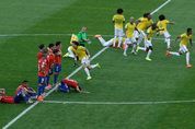 월드컵 6회 우승에 도전하는 브라질이 2014 브라질 월드컵 16강전에서 남미의 강호 칠레에 신승을 거두고 8강에 진출했다. 또 ‘막강 화력’ 콜롬비아도 우루과이를 완파하고 8강에 합류해 브라질과 맞붙게 됐다. 브라질은 29일 브라질 벨루오리존치의 미네이랑 경기장에서 열린 16강전 토너먼트 칠레와 경기에서 연장전까지 1-1로 승부를 가리지 못한 뒤 승부차기에서 3-2로 힘겹게 승리했다. 네이마르를 앞세워 공격에 나선 브라질은 칠레의 단단한 수비 조직력과 골키퍼 클라우디오 브라보의 ‘선방 쇼’에 진땀을 뺐다. 브라질은 전반 18분 네이마르가 왼쪽에서 올린 코너킥을 치아구 시우바가 머리로 받아 넘겨기자 페널티박스 왼쪽에 있던 다비드 루이스가 다리로 밀어 넣어 먼저 골망을 흔들며 손쉽게 경기를 주도하는 듯 했다. 그러나 칠레는 전반 32분 브라질 진영 오른쪽에서 헐크의 볼을 빼앗은 에두아르도 바르가스가 페널티 박스 오른쪽으로 밀어준 볼을 알렉시스 산체스가 오른발슛으로 연결, 1-1 균형을 맞추며 승부를 원점으로 돌렸다. 전반을 1-1로 마친 브라질은 후반들어 공세의 수위를 높였지만 칠레 골키퍼 브라보의 선방과 미드필드부터