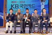 창원 LG의 포워드 문태종(39)이 2013~2014 KB국민카드 프로농구 정규리그 최우수선수(MVP)의 영예를 안았다. 문태종은 14일 서울 송파구 잠실학생체육관에서 열린 프로농구 시상식에서 MVP 기자단 투표 총 98표 가운데 71표를 얻어 22표의 조성민(부산 KT)을 따돌리고 MVP에 선정됐다. 문태종은 정규리그 54경기에 나와 평균 13.5점, 4리바운드, 2.5어시스트의 성적을 내며 LG가 1997년 창단 이후 처음으로 정규리그 1위에 오르는 데 앞장섰다. 국내 선수 가운데 최고령인 문태종은 울산 모비스와의 챔피언결정전에서도 평균 16.8점, 4.5리바운드, 3.5어시스트로 정규리그보다 오히려 더 나은 성적을 내는 등 건재를 과시했다. 1997년 출범한 프로농구에서 귀화·혼혈 선수가 정규리그 MVP에 선정된 것은 문태종이 처음이다. 신인선수상은 LG 김종규(23)가 받았다. 신인 드래프트 전체 1순위로 LG 유니폼을 입은 김종규는 이번 시즌 정규리그에서 10.7점을 넣고 5.9리바운드를 기록해 13.4점에 5.1리바운드, 4.6어시스트의 성적을 낸 전체 2순위 김민구(23·KCC)를 따돌렸다. 김종규는 98표 가운데 69표