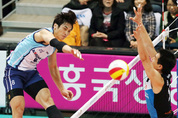 남자 프로배구 인천 대한항공이 천안 현대캐피탈을 꺾고 3년 연속 챔피언결정전에 진출했다. 대한항공은 19일 인천 도원시립체육관에서 열린 NH농협 2012~2013 프로배구 V리그 남자부 플레이오프(3전2선승제) 2차전에서 주포 김학민의 맹타에 힘입어 현대캐피탈을 세트스코어 3-0(25-20 25-22 25-20)으로 물리쳤다. 이로써 플레이오프 2연승을 거둔 대한항공은 2010~2011시즌부터 3년 연속으로 챔피언결정전 무대에서 대전 삼성화재와 맞붙게 됐다. 대한항공은 팀을 강호로 올려놓은 신영철 감독에게서 시즌 도중 지휘봉을 빼앗고 김종민 감독대행 체제를 꾸리는 등 부침을 겪었으나 위기를 이겨내고 다시 정상에 도전할 기회를 잡으며 저력을 증명했다. 이번 시즌을 마지막으로 입대할 예정인 김학민은 우승을 향한 강렬한 의지를 집중력 넘치는 플레이로 고스란히 보여줬다. 1차전 승리의 일등공신인 대한항공 외국인선수 네맥 마틴(슬로바키아)이 34.78%의 공격 성공률로 12득점하는 데 그쳤지만 김학민의 활약은 이를 보충하고도 남았다. 김학민은 76%의 고감도 공격 성공률을 찍으며 21득점을 올려 현대캐피탈 코트를 맹폭했다. 경기 시작 휘슬이 울리자마자 현대캐피탈이 먼