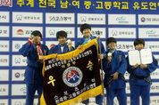 안산 관산중이 제40회 추계 전국 중·고등학교 유도연맹전 여자중등부 단체전에서 우승을 차지했다. 관산중은 10일 경북 김천 실내체육관에서 최민호 올림픽제패기념 2012 전국 중·고등학교 유도대회를 겸해 벌어진 대회 사흘째 여중부 단체전(무차별 5전3선승제) 결승에서 전남 여수 무선중을 접전 끝에 종합전적 3-2로 누르고 정상에 올랐다. 이로써 관산중은 지난 6월 충북 충주실내체육관에서 막을 내린 2012 청풍기 전국 초·중·고등학교 유도대회 여중부 단체전 정상 이후 올 시즌 두번째로 전국대회 정상에 오르는 기쁨을 누렸다. 또 추계 연맹전에서는 지난 2008년 대회 이후 4년만에 우승을 차지하는 영광을 안았다. 결승에 출전한 모든 선수를 여중부 최중량급인 +70㎏급 선수로 꾸린 관산중은 결승 제1경기에서 김아현이 상대 오정빈을 가볍게 누르고 1-0으로 앞서나갔으나 제2경기에 나선 김민영이 무선중 채윤지에 패하며 종합전적 1-1의 균형을 허용했다. 관산중은 제3경기에 나선 임보영이 상대 김지정을 꺾어 다시 종합전적 2-1로 승기를 잡았지만 제4경기에 출전한 송소현이 구나영에게 아쉽게 패하며 또다시 승부를 원점으로