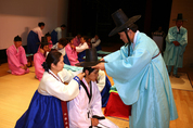 15일 용인시 문화복지행정타운내 문화예술원에서 열린 제34회 성년의 날 기념식 및 전통성년례 행사. 성년례는 삼가례(상투를 틀고 관을 씌우는 의식), 초례(술을 주는 의식), 가자례(자를 지어주는 의식) 순으로 진행됐다./사진제공=용인시