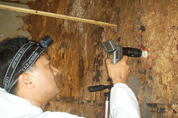 국립문화재연구소 연구원이 북한 소재 고구려 벽화고분에 대한 실태 조사를 벌이고 있다.