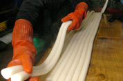 설날을 열흘 앞두고 도내 곳곳의 방앗간에는 떡국을 준비하려는 시민들의 발걸음이 끊이질 않고 있다. 19일 수원시 인계동의 한 방앗간 주인이 김이 모락모락 나는 가래떡을 뽑으며 바쁜 손을 놀리고 있다. 최윤영기자 noopy@kgnews.co.kr
