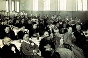 초대 교황사절인 빈 주교의 주교서품식 뒤 명동성당에서 열린 축하연. 김구 선생과 함께한 노기남 대주교(왼쪽에서 두번째가 김 구 선생, 왼쪽에서 네번째가 노기남 대주교).