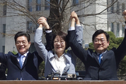 더불어민주당 수도권 광역단체장 후보들이 12일 한자리에 모여 6·3 지방선거 승리를 위한 공동 전선 구축에 나서며 ‘수도권 원팀’ 행보를 공식화했다. 회동 내내 세 후보는 서로의 손을 맞잡으며 결속력을 과시했다. 이번 회동을 기점으로 민주당 수도권 후보들의 연대가 공식화되면서 교통난 해소와 주거 안정 등 수도권 민심을 겨냥한 공동 정책 행보에 속도가 붙을 전망이다. 추미애 경기지사 후보, 박찬대 인천시장 후보, 정원오 서울시장 후보는 이날 국회 소통관 앞에서 간담회를 열어 수도권을 하나의 공동 운명체로 규정하고 이재명 정부의 국정 운영을 강력히 뒷받침하겠다는 의지를 밝혔다. 이번 공개 회동에서 세 후보는 교통·주거·산업 등 수도권 전역에 걸친 공통 현안을 해결하기 위한 ‘수도권 후보 3인 회동 결의문’을 공개했다. 가장 먼저 추미애 후보는 경기도를 ‘작은 대한민국’이라 칭하며 수도권 협력의 필요성을 설명했다. 추 후보는 “경기도가 처한 문제는 대한민국의 문제와 직결돼 있고, 경기도가 어떻게 문제를 풀고 어떻게 해법을 내는가에 따라 경기도와 대한민국의 경제 전망은 달라질 것”이라며 “교통·주거·산업 등 모든 문제가 수도권이 일체화돼 함께 풀 때 대한민국이 다시