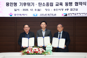 용인특례시는 지난 8일 시청 접견실에서 강남대학교, 용인예술과학대학교와 ‘용인형 기후위기·탄소중립 교육 동행 협약’을 체결했다고 9일 밝혔다. 이날 협약식은 기후위기에 공동으로 대응하고, 지속가능한 지역사회 발전과 미래 세대 양성을 위해 마련됐다. 협약의 주요 내용은 ▲탄소중립·기후 위기 대응 교육프로그램 공동 개발·운영 ▲교육봉사·멘토링 등 교원·전문가·학생 간 교류와 연계 활동 지원 ▲지역사회 대상 탄소중립 홍보·캠페인·체험 교육 공동 추진 ▲교육시설·인프라 상호 활용 등이다. 협약에 따라 시와 두 대학은 탄소중립 사회 실현을 위한 교육 모델을 구축할 계획이다. 각 대학의 유아교육과 인력과 연계해 교육봉사 기회를 확대하고, 신규 프로그램을 공동 개발해 용인지역 학생들을 탄소중립 실천 의지를 가진 인재로 육성하고, 시민의 환경 감수성을 높이는 데도 이바지할 예정이다. 이에 따라 오는 12일 용인예술과학대 유아교육과 연극동아리가 기후변화체험교육센터에서 아동 30명을 대상으로 관련 연극을 진행한다. 이상일 시장은 “기후 위기는 글로벌 차원의 가장 중대한 문제인 만큼 기후 위기에 대응하기 위해 중앙‧지방정부, 대학, 각 기관 등이 서로 협업 시스템을 잘 가동하는