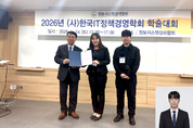 경복대학교 영상미디어콘텐츠학과가 (사)한국IT정책경영학회 학술대회 경진대회에서 AI·XR 기반 실감콘텐츠 작품으로 최우수상을 수상했다. 이번 수상은 영상미디어콘텐츠학과가 참여한 '2026년 한국IT정책경영학회 학술대회' 응용기술 경진대회에서, 전공 수업 '실감콘텐츠기획'을 통해 제작된 AI·XR 실감콘텐츠 작품 'THE FALLEN CITY'가 높은 평가를 받은 데 따른 것이다. 작품에는 2학년 이형석·윤준혁 학생이 참여했다. 이번 학술대회는 AI와 디지털 전환, IT 정책과 경영을 주제로 대학·기업·연구기관이 참여해 연구 논문 발표와 공동연구 성과, 응용기술 사례를 공유하는 자리로 마련됐다. 수상작은 AI 기반 콘텐츠 기획과 XR 공간 이동 설계 개념을 전공 수업 과정에 적용한 사례로, XR 환경에서의 수직·수평·장소 이동 등 공간 경험 요소를 중심으로 콘텐츠를 구성했다. 작품 제작에는 스페이셜(Spatial), 메쉬.ai(Meshy.ai), 스케치팹(Sketchfab), 유니티(Unity), 메타 퀘스트 3(Meta Quest 3) HMD 등 AI·XR 콘텐츠 제작 도구와 플랫폼이 활용됐으며, 기획부터 제작·체험까지 이어지는 실감콘텐츠 제작 전 과정을 구
