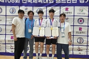 경기도가 '제106회 전국체육대회' 배드민턴 종목에서 금메달 3개를 수확했다. 김태연(수원 영덕고)-이형우(광명북고) 조는 1일 부산시 강서체육공원 실내체육관에서 사전경기로 열린 대회 배드민턴 18세 이하부 혼합복식 결승에서 구미시의 강승현-강예림 조를 2-0으로 완파했다. 남대부 개인복식 결승에서는 박승민-이민욱 조(경희대)가 김도윤-현시원 조(원광대)를 상대로 2-1 역전승을 거둬 우승의 기쁨을 맛봤다. 조성훈(수원 매원고)-조형우(광명북고) 조는 남자 18세 이하부 개인복식 결승에서 김태호-송현성 조(서울체고)를 2-1로 꺾고 시상대 정상을 차지했다. 이로써 도 배드민턴은 이날 걸린 9개의 금메달 중 3개를 쓸어담으며 제105대회에서 획득한 금메달 갯수와 타이를 이뤘다. 기장체육관에서 벌어진 당구 일반부 포켓9볼 혼성복식 준결승에서는 서성호(부천당구연맹)-김혜영(성남당고연맹) 조가 경규민-이하린 조(인청시체육회)에게 패해 동메달에 만족했다. 한편 제106회 대회에서 4년 연속 종합우승에 도전하는 경기도는 이날 오후 5시 기준 금 11개, 은 9개, 동메달 17개를 획득, 종합점수 5812점으로 1위를 달리고 있다. 2위는 인천시(4977점), 3위는 '